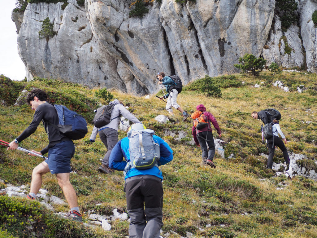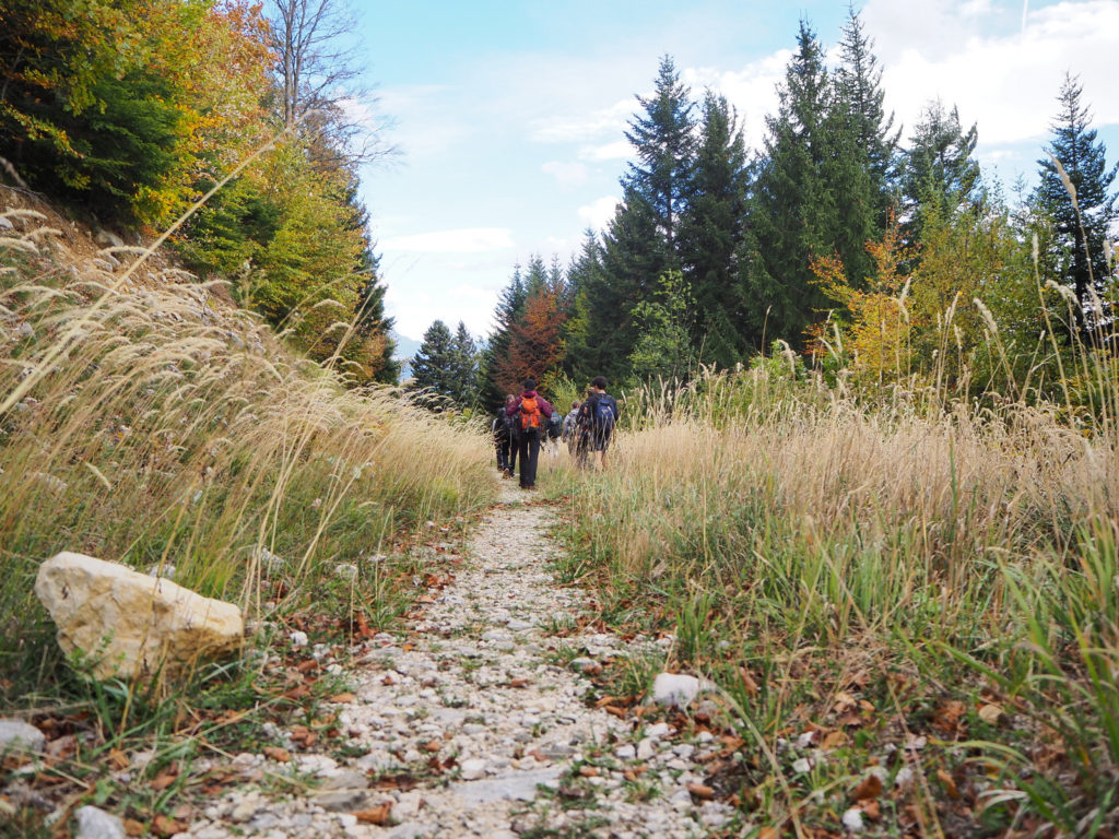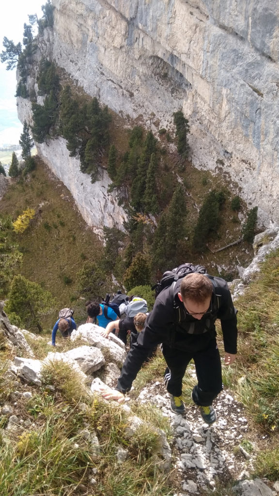 Pour cette rando accessible en bus (et sans se lever trop tôt en plus ! puisque le départ était à 9h30), nous avons donc rejoins en Transisère le plateau des Petites Roches en Chartreuse. La montée pour le Pas de Montbrun était plutôt raide jusqu’à devoir s’aider un peu de ces mains sur la fin, mais personne n’est resté bloqué ! Et surtout on a pu observé une belle troupe de chamois (à voir plus bas en photos) On a alors pu profiter du plateau pour trouver un coin abrité du vent pour la pause repas.