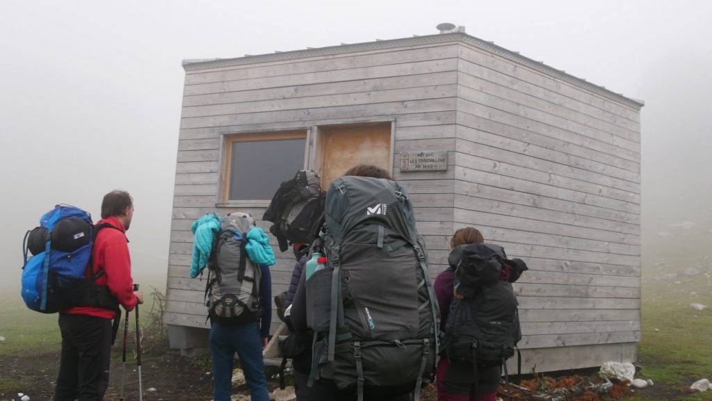 Le refuge, en forme d’hexagone, comporte une vingtaine de places, une table avec deux bancs et un poêle à bois. Nous ne serons pas les seuls à dormir ce soir : deux groupes à l’intérieur et deux à l’extérieur seront de la partie.