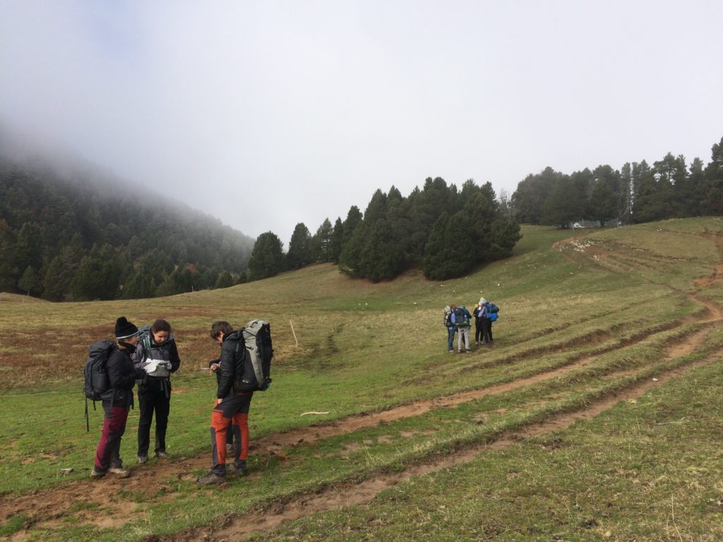 Une nouvelle fois, nous faisons deux groupes et avançons à la recherche des points notés sur la carte. Notre groupe utilise plutôt les reliefs et les chemins existant pour avancer ; l’autre groupe, la méthode de l’azimut, consistant à tenir un cap avec la boussole