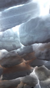 Vêtements : vêtements chauds – bonnet – deux paires de gants (une qui finit trempée après l’igloo) – veste coupe-vent – guêtres et surpantalon étanche si vous avez – une paire de chaussettes de ski en plus.