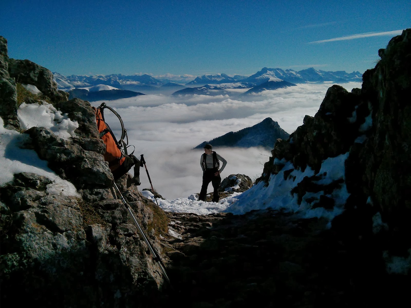 Pause au col avec une magnifique mer de nuages et surtout un magnifique soleil.