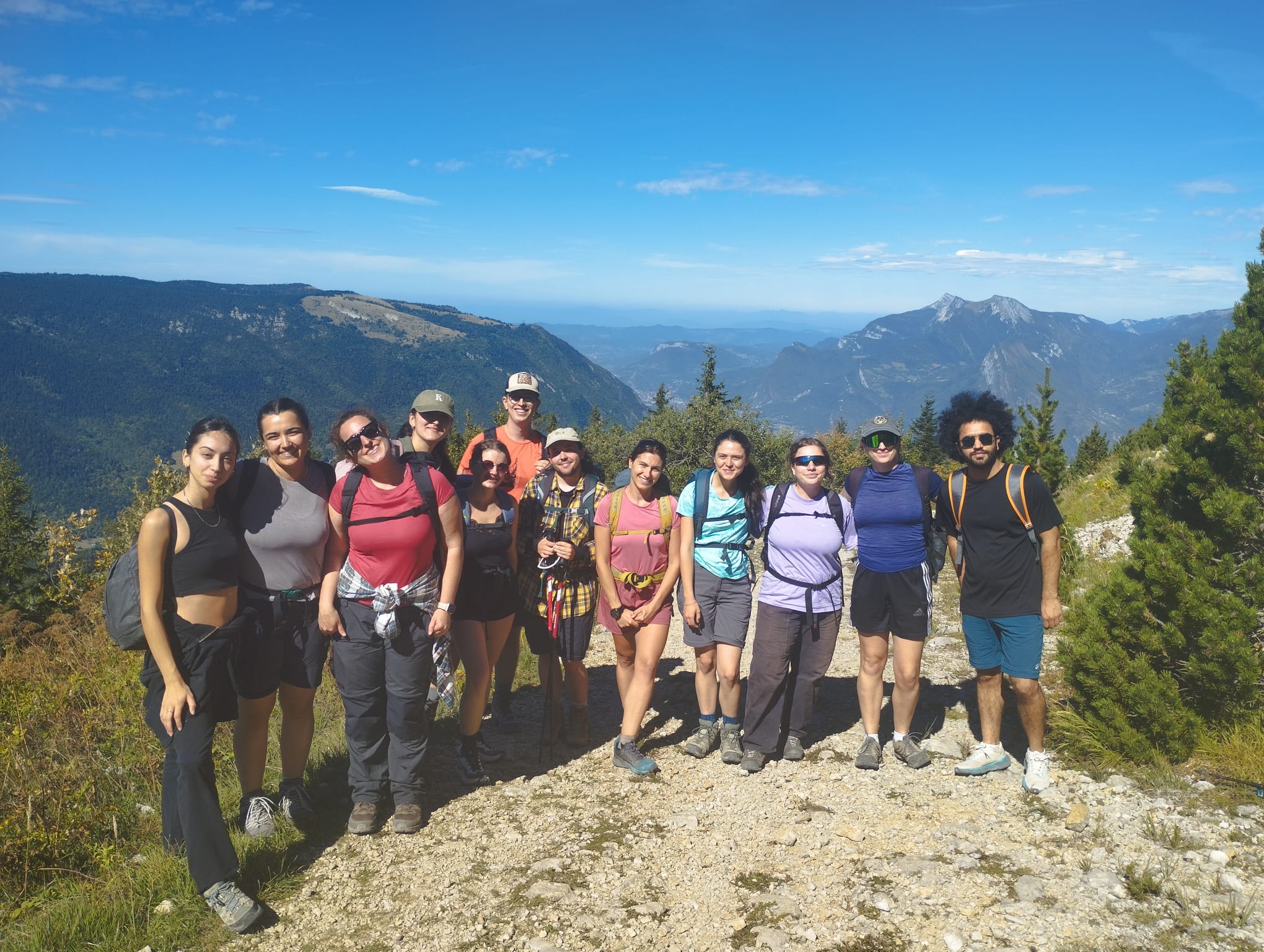 Pour cette rando accessible en bus (et sans se lever trop tôt en plus ! puisque le départ était à 9h30), nous avons donc rejoins en Transisère le plateau des Petites Roches en Chartreuse. La montée pour le Pas de Montbrun était plutôt raide jusqu’à devoir s’aider un peu de ces mains sur la fin, mais personne n’est resté bloqué ! Et surtout on a pu observé une belle troupe de chamois (à voir plus bas en photos) On a alors pu profiter du plateau pour trouver un coin abrité du vent pour la pause repas.