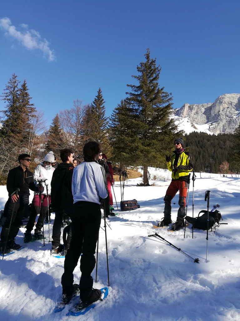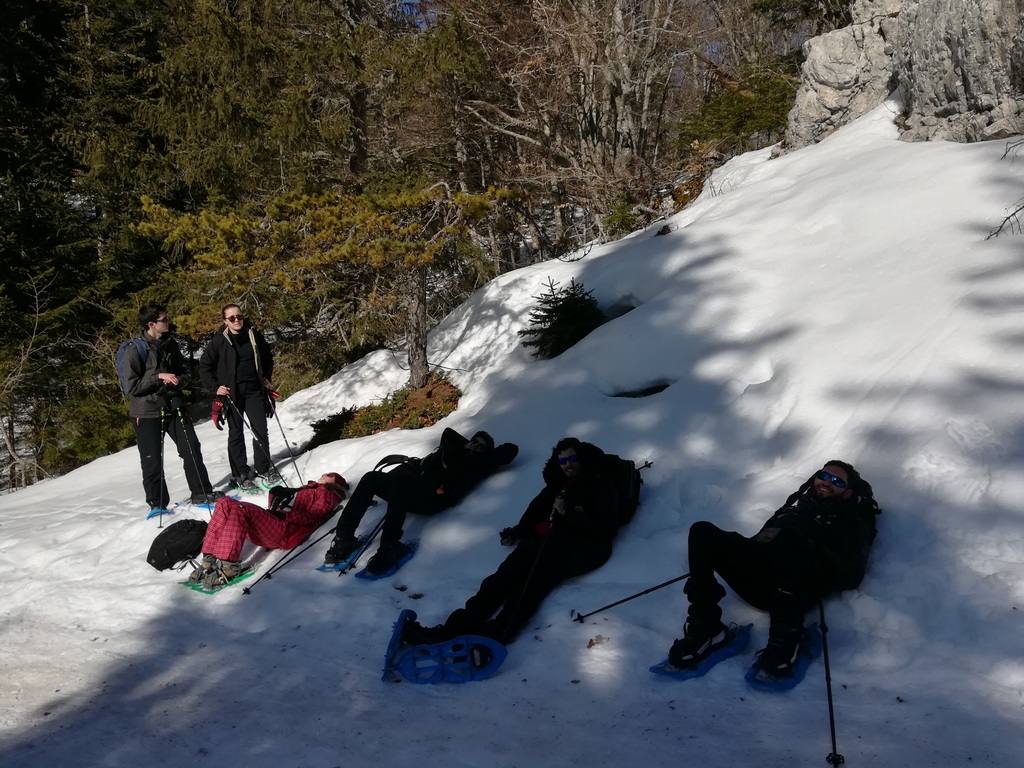 Une randonnée encadrée par Sophia et Nicolas, encadrants bénévoles du club Grenoble Rando Université en partenariat avec l’AITAP, l’association des doctorants et jeunes chercheurs du CEA. Le club a pu prêté le matériel raquettes, bâtons, guêtres à l’ensemble du groupe.