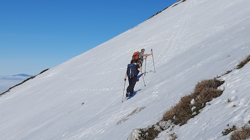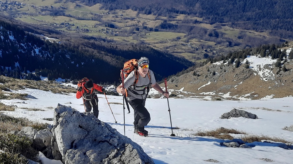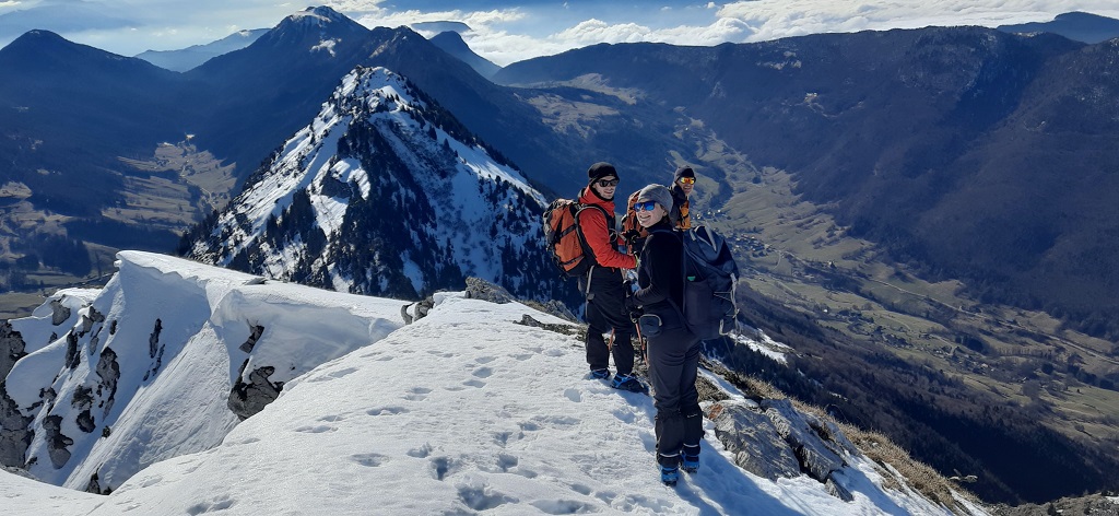 Quelques photos de cette belle ascension proposée par Emmanuel dans les Bauges, sur un des 14 sommets de plus de 2000m des Bauges, l’occasion de chausser les crampons en cet hiver faiblement enneigé.