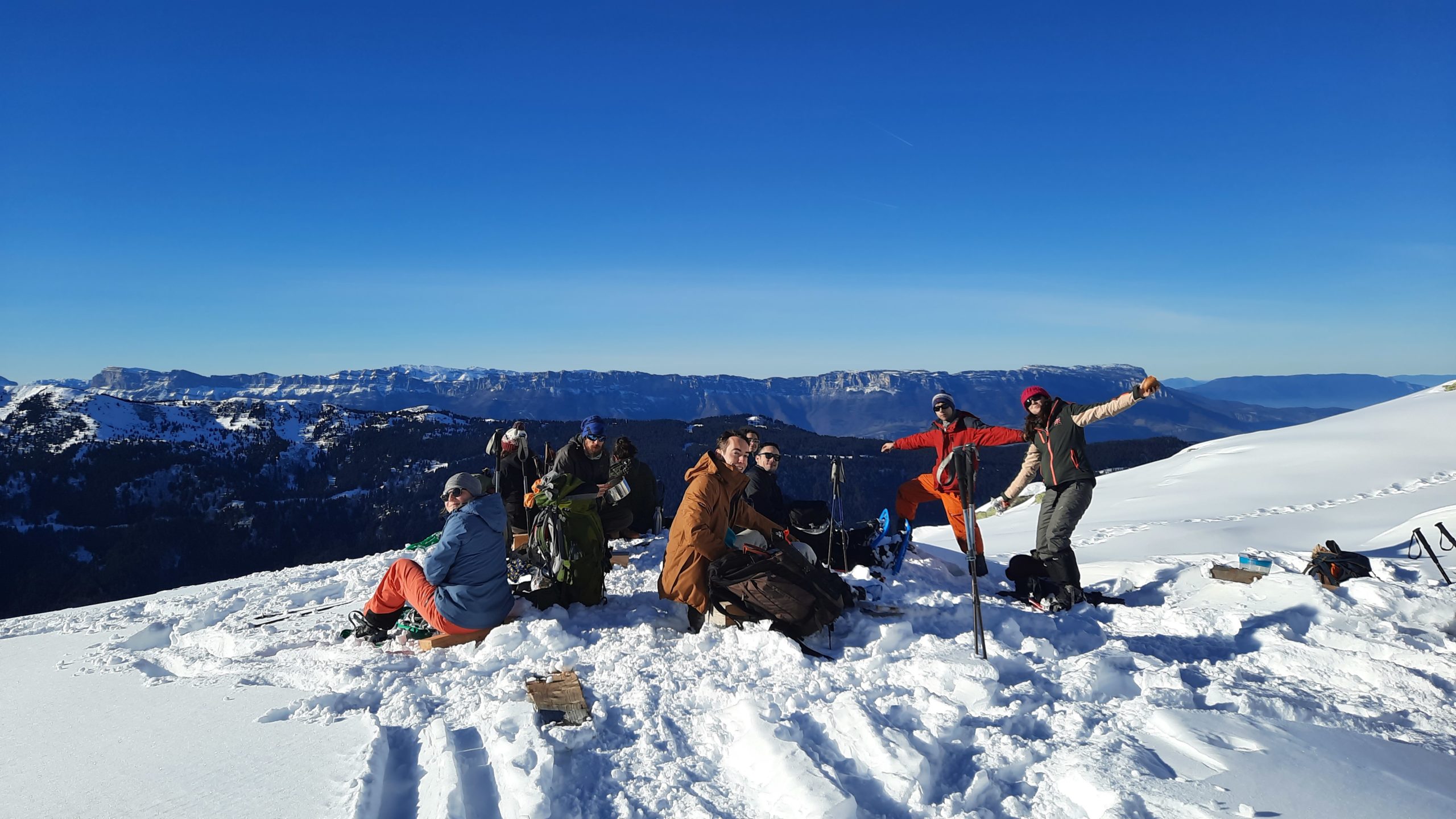 Demain, nous repartirons sous un soleil doré, la neige étincelante de cristaux argentés. Déjà nous nous connaîtrons davantage, ayant partagé la nuit de la cabane, sa chaleur et la fondu, la connivence et la complicité ayant tissé sa toile. Nous irons haut puis nous déciderons finalement de redescendre plus rapidement, le bus nous attend ! Alors la pente deviendra notre terrain de jeux, rappelant l’enfance et sa légèreté, ses jeux de luges, l’innocence pleine et les rires abondants. Nous glisserons sur les flancs de la montagne, dans sa poudreuse délicieuse.
