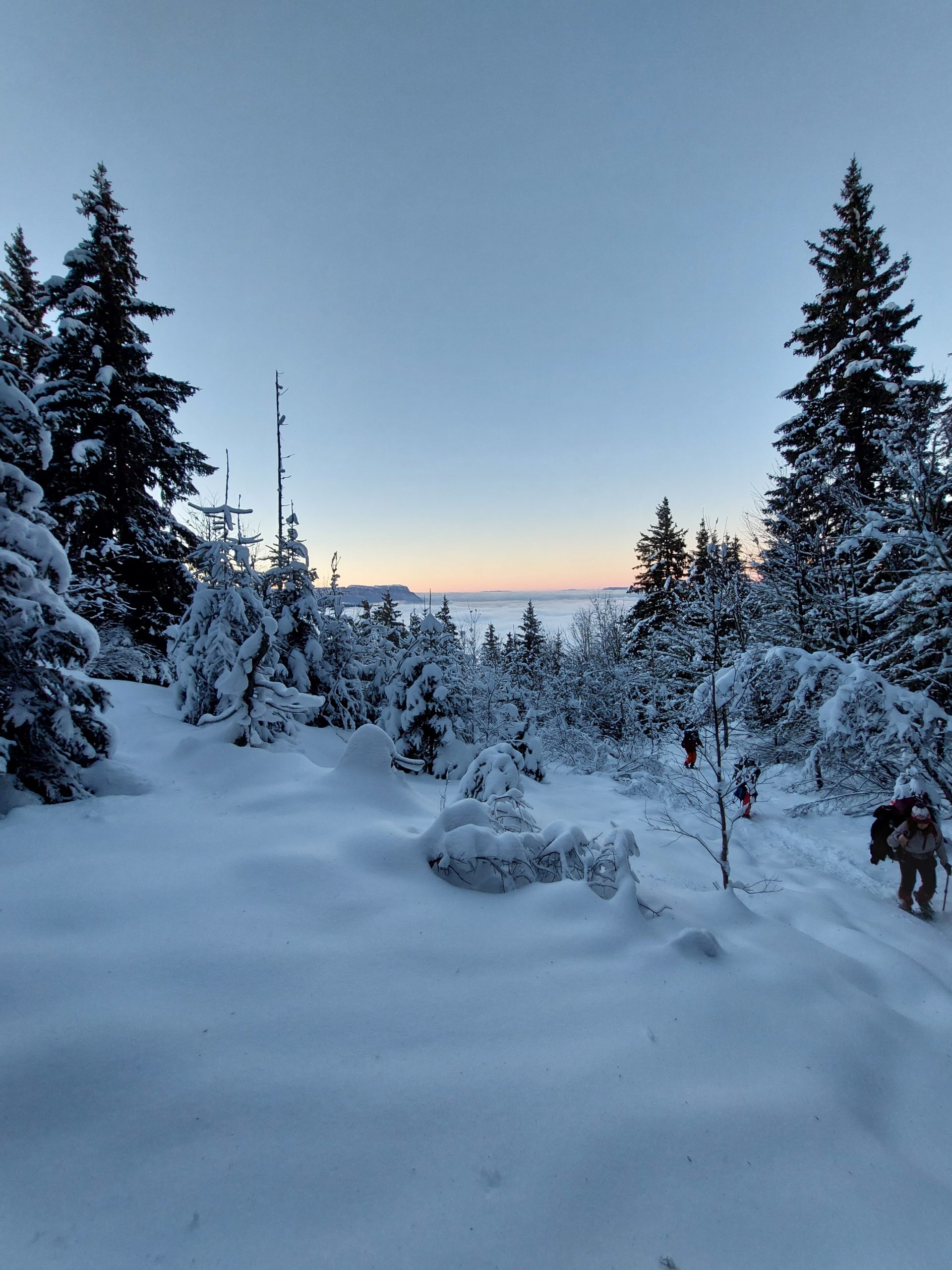 Mer de nuages A 1719 mètres d’altitudes Cabane reculée, Temps d’éternité, La sensation vibrante d’être plus haut que tout le reste du monde, Et que nos âmes vagabondes, loin de toute civilisation, se donnent à la contemplation. Cheminer avec des sacs lourds, le froid piquant les lèvres, Mais le cœur aussi paisible que la montagne silencieuse sous son épais manteau neigeux. La montagne écrin de vérité, de sobriété, de simplicité et de sourires partagés. Un peu essoufflés parfois, on se croit pourtant les aventuriers des temps modernes et on monte, on poursuit, on continue jusqu’à la sobre et belle cabane : refuge de notre nuit, de notre repas et de nos discussions.