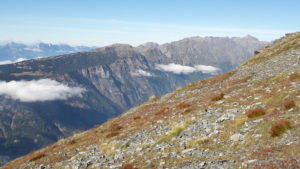Avec les couleurs rougeâtres des buissons d’automne, et une vue originale sur l’autre versant de Belledonne …