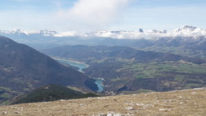 Un panorama à 360° sur les massifs encore enneigés , les lacs de Laffrey, et au loin le lac de Monteynard qui resplendit de ses eaux turquoises …