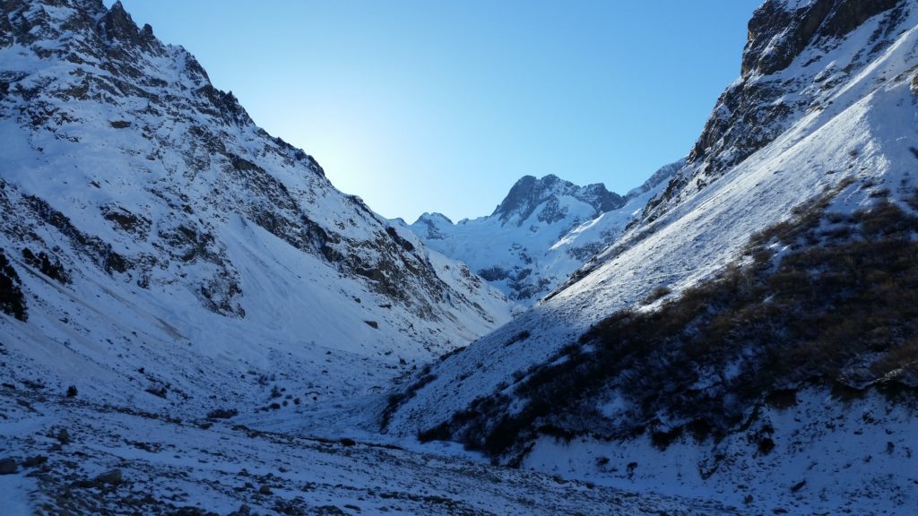 Photo prise en hiver au delà de la Bérarde, hiver 2015, je pense que l’accès actuel doit être encore bloqué par la neige pour aller aux Etages, nous n’irons pas cette fois.