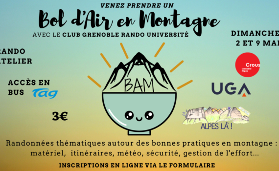 Tu as envie d’apprendre à (mieux) préparer tes randos en montagne ? Connaître les trucs et astuces pour être sûr de passer un bon moment au bon air? Le Club Grenoble Rando Université organise des ateliers les dimanches 2 et 9 mai en montagne pour discuter préparation de randos, itinéraire, […]